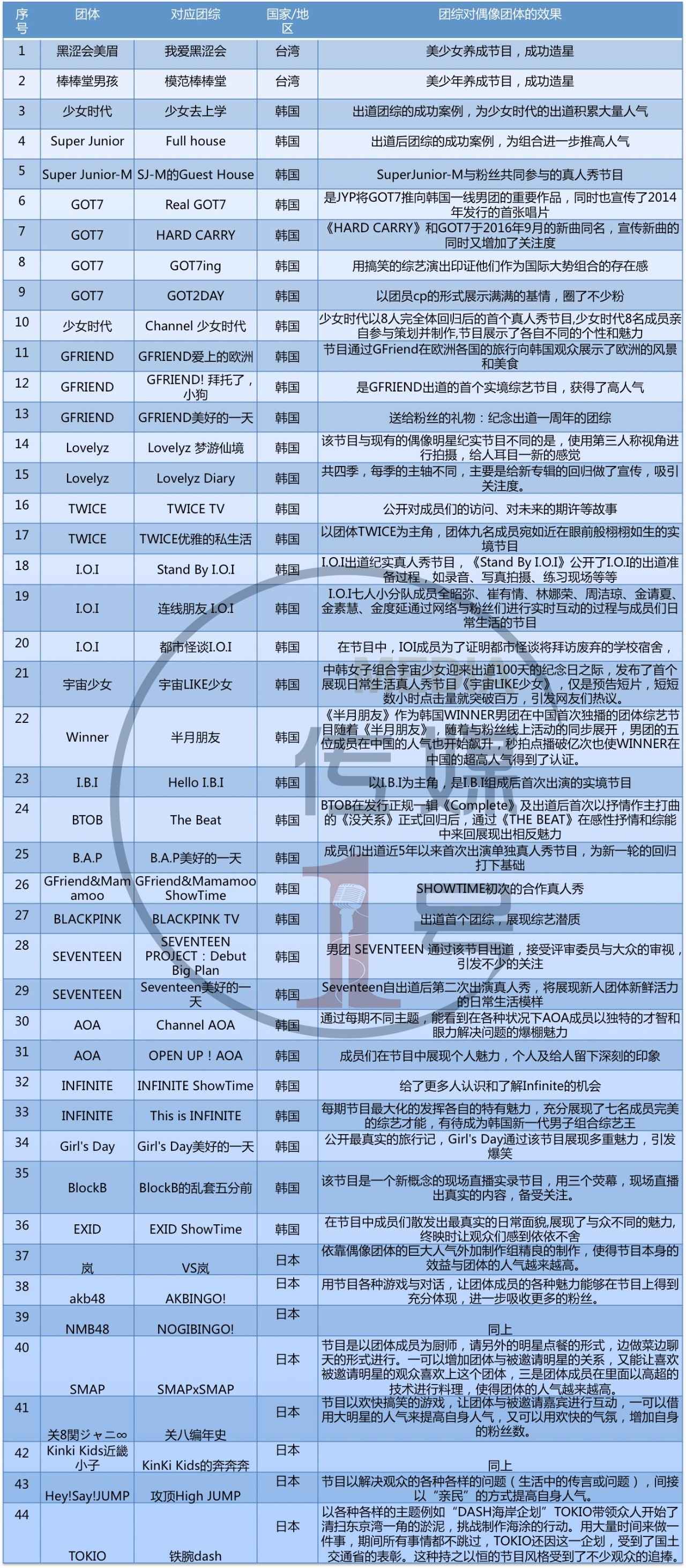 ▲表3:日韩台偶像团体综艺节目不完全统计