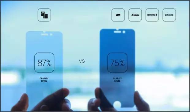 防窥屏一定程度上都会影响到屏幕的清晰度,Peek Sreen 则对玻璃做了改善,加上厚度仅为 0.3mm,将一般产品的 75%清晰度一次性提高至 87%。