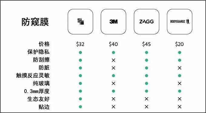 团队的座右铭是「好的不意味着贵的」,虽然性能方便完虐其他防窥膜,Peek Screen 还是坚定实惠路线不动摇,看下对比图就能见分晓。