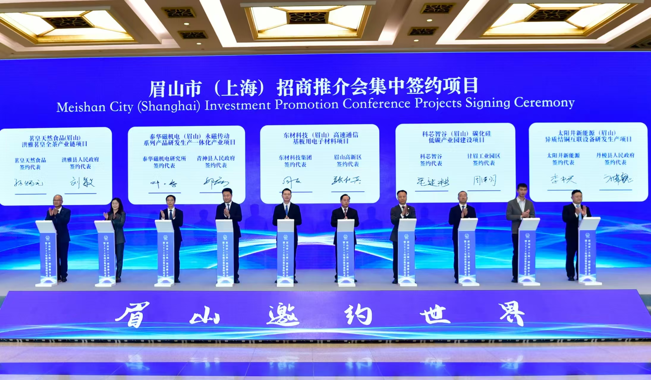 12月26日下午,眉山市(上海)招商推介会暨2024年项目集中签约仪式在上海国际会议中心举行。这是四川省委经济工作会议召开后,眉山庚即举行的招商活动,众多央企、外企、民企纷纷将战略布局和投资意向瞄准眉山。