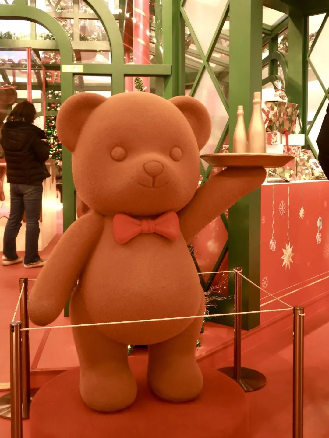 为庆圣诞,上海环贸iapm商场中庭化身“可可聚会”,巧克力熊仔Coco以可爱的笑容装点童话氛围。