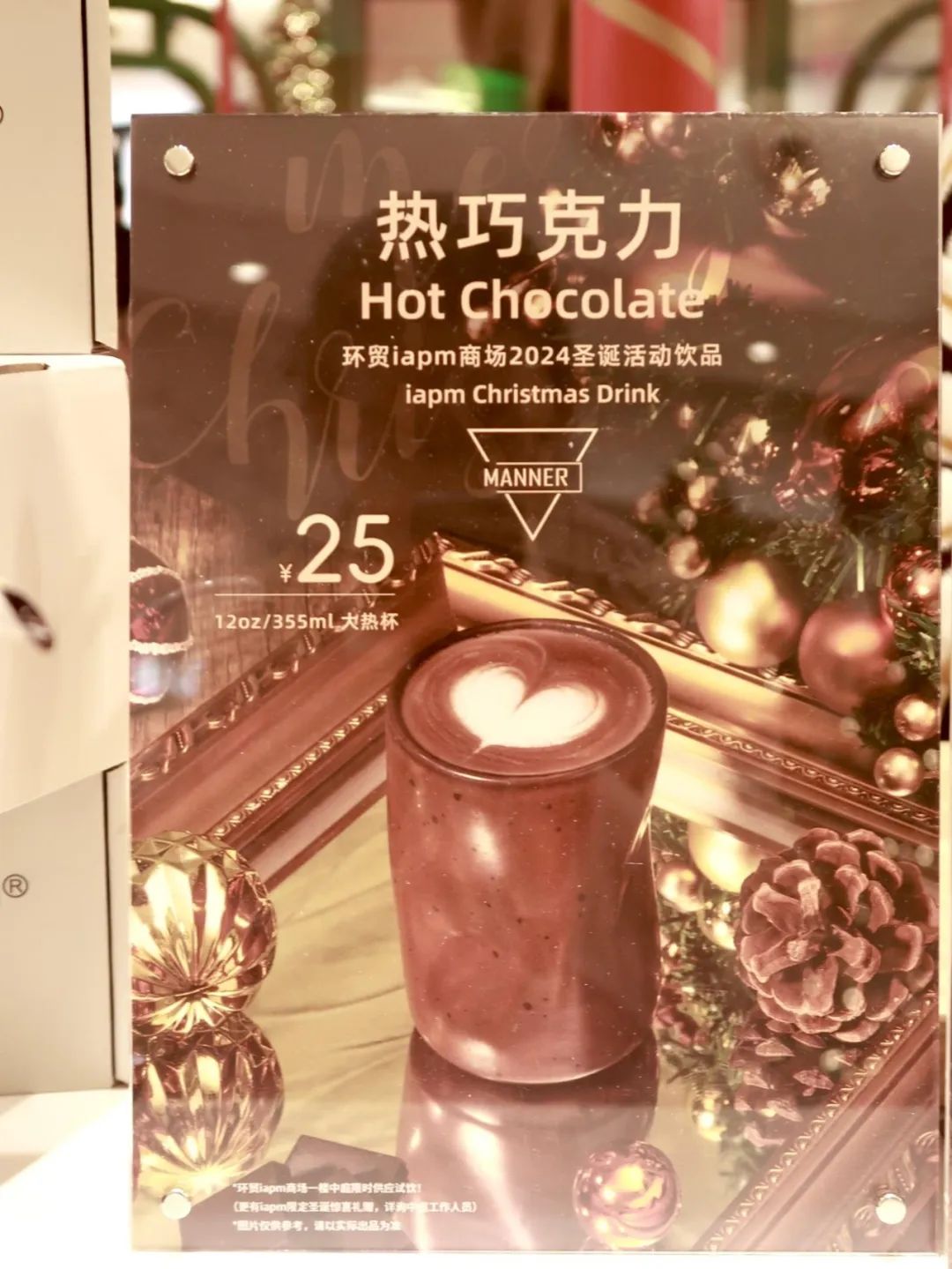 MANNER摊位仅提供一款热销饮品——热巧克力。圣诞佳节,商场内打卡各式各样的圣诞装置的游客络绎不绝。为吸引顾客,MANNER摊位特别设置了免费品尝环节,有效提升了新品的曝光度,将过往的商场人流转化为对新品充满好奇的潜在消费者。