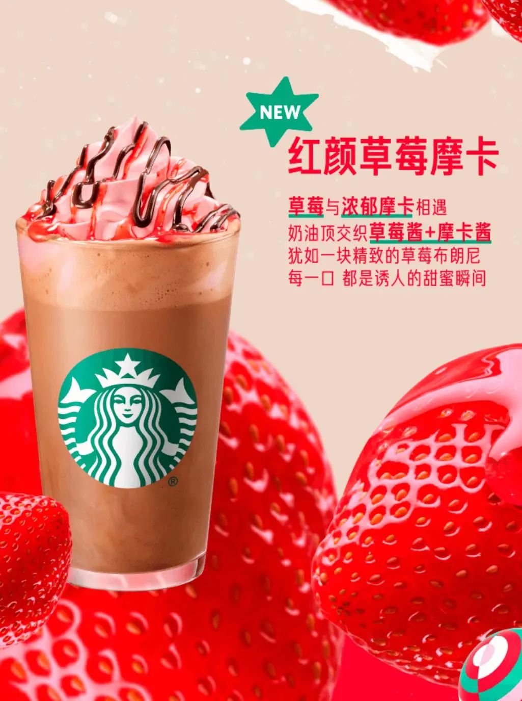 星巴克则在冬日草莓季推出新品「红颜草莓摩卡」,不仅应季水果的新鲜满足了当下消费者对健康化的追求,巧克力元素的融入还满足了消费者对新奇口味的探索欲和好奇感。