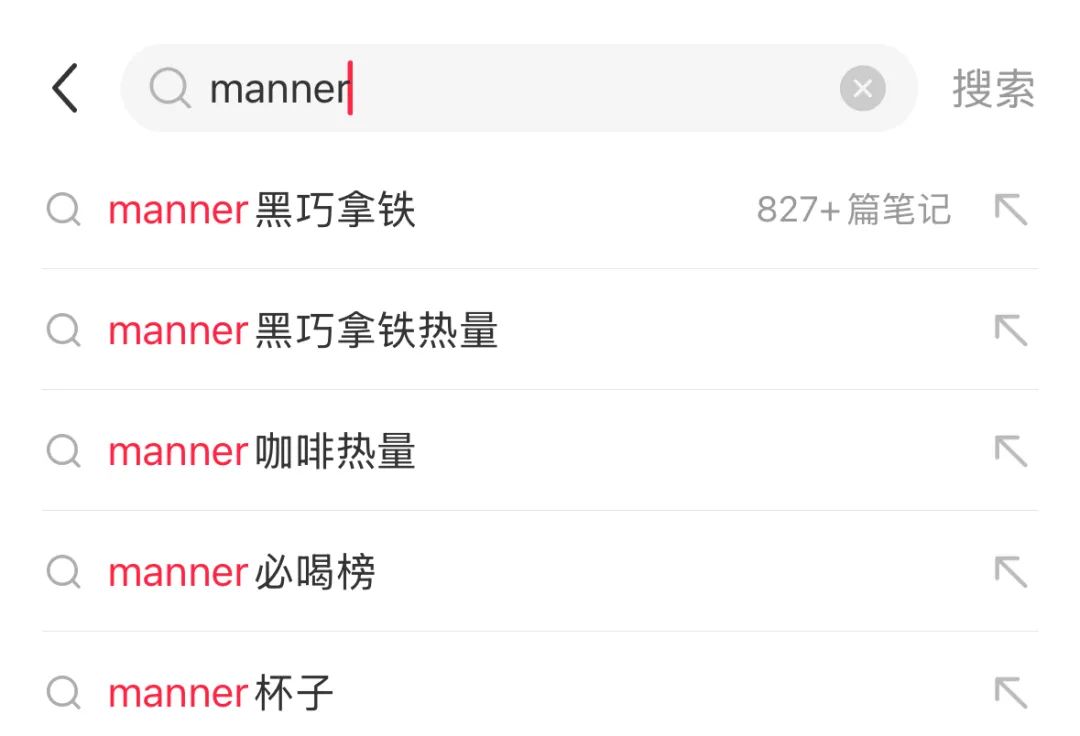 MANNER这款新品大受欢迎。上新官宣内容发布仅24小时左右,小红书上关于 #MANNER 黑巧拿铁# 的笔记量已经达到了827篇以上,大部分笔记内容以新品的口味品鉴为主——微苦黑巧的回甘体验、加糖加冰的搭配技巧以及多样的拉花展示。