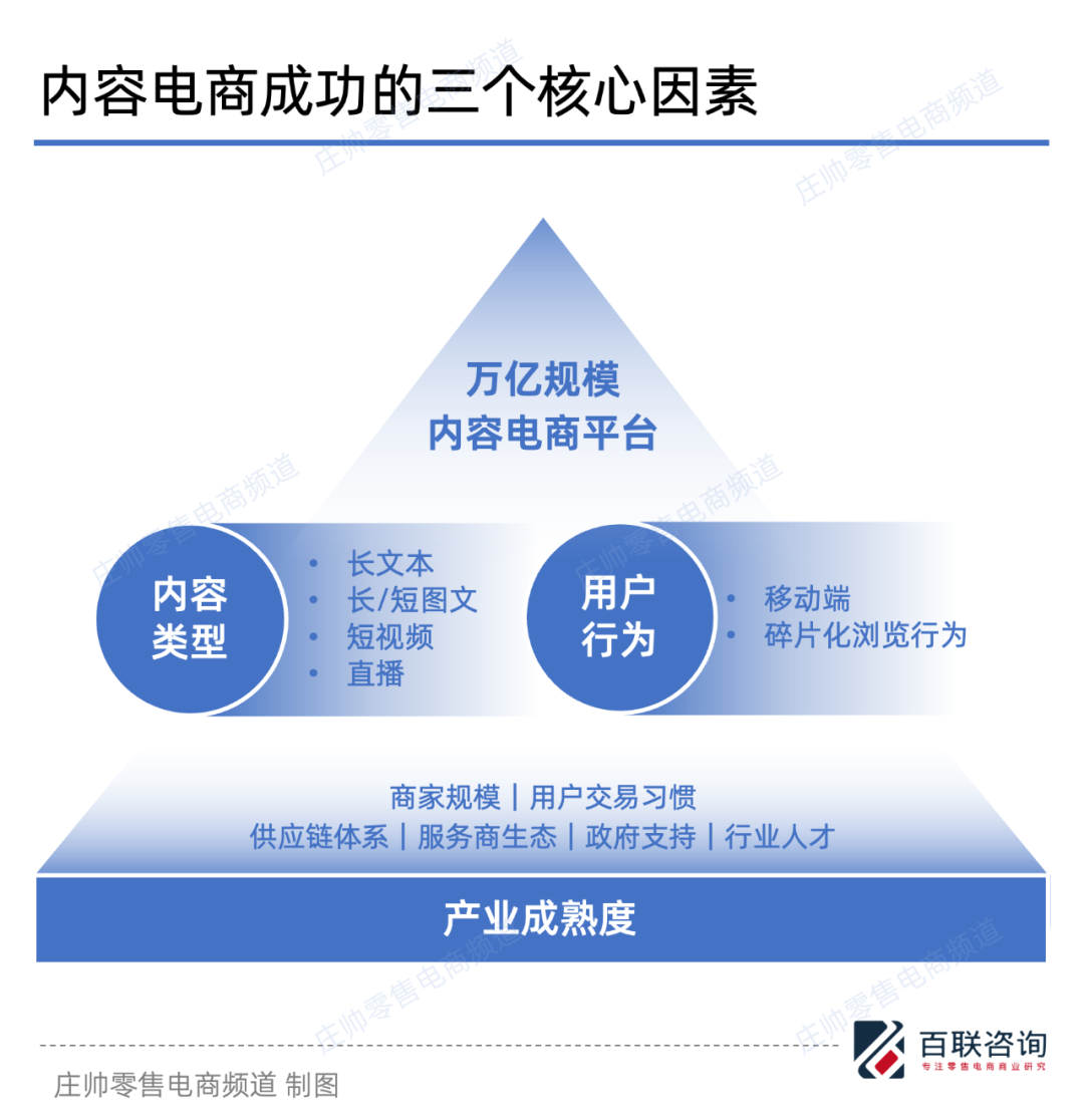 「庄帅零售电商频道」深入研究发现,抖音电商和快手电商成功的背后有三个核心因素:内容类型、用户行为和产业成熟度。