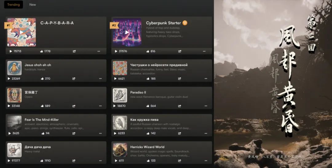 过去一年,中国数字音乐产业规模稳步增长,有预测显示,2024年全球数字音乐市场增长率预估为13.23%。同时,AI音乐生成技术从实验室走向大众市场,Suno、Udio、天工SkyMusic等让音乐创作愈加手到擒来;《黑神话·悟空》迅速打开国际市场,让行业见证了“音乐+游戏”的无限可能。