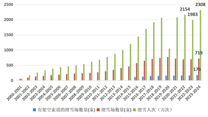 此外,滑雪仍然是项渗透率低的运动项目。据美国国家滑雪场协会(NSAA)的报告显示,在2023-2024雪季,中国的滑雪人次达到 2308万,同比增长16.3%,同时期的美国滑雪人次达到6040万,尽管外国游客占比较多,但美国国内滑雪人次仍能达到2501.7万人。