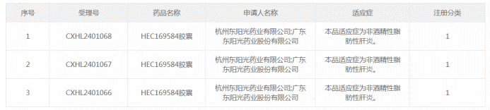 2024年12月16日,广东东阳光药业股份有限公司、杭州东阳光药业有限公司收到国家药品监督管理局核准签发的《药物临床试验批准通知书》,批准1类新药HEC169584胶囊开展用于非酒精性脂肪性肝炎的临床试验。