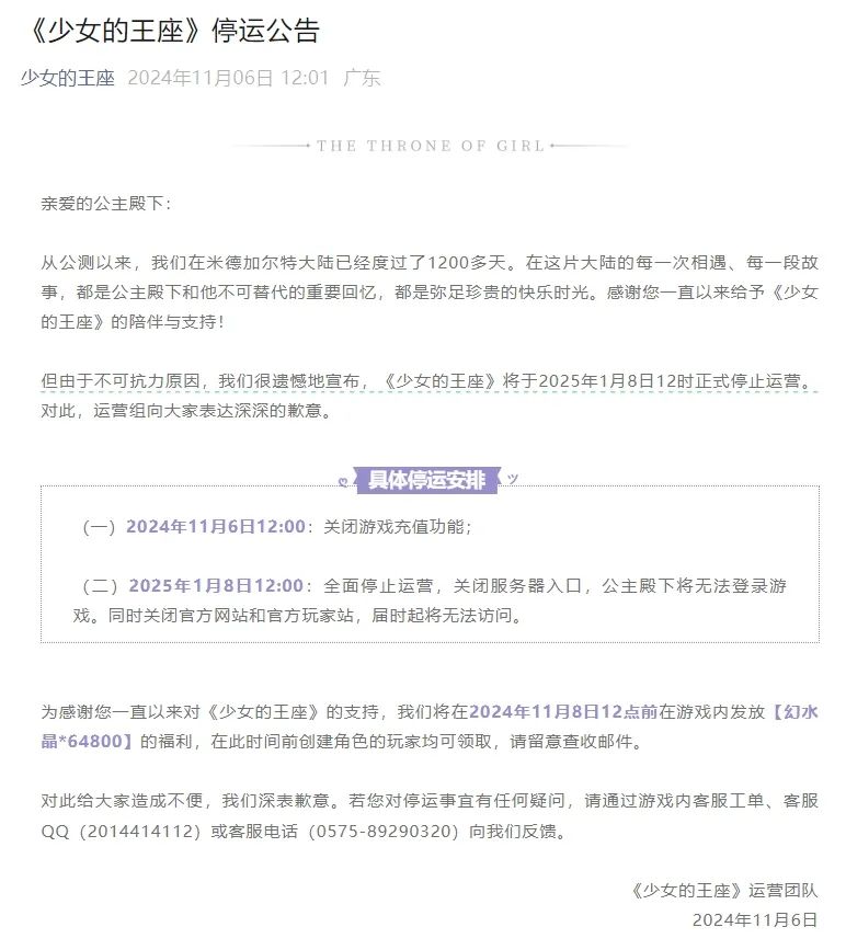 长期下来,新用户获取困难,老用户不断流失,公司无法承担开发副玩法的周期与预算,就会严重影响游戏的收益。消费纪了解到,近1个月就有《摇光录》《少女的王座》《筑梦公馆》2款女性向游戏宣布停服。
