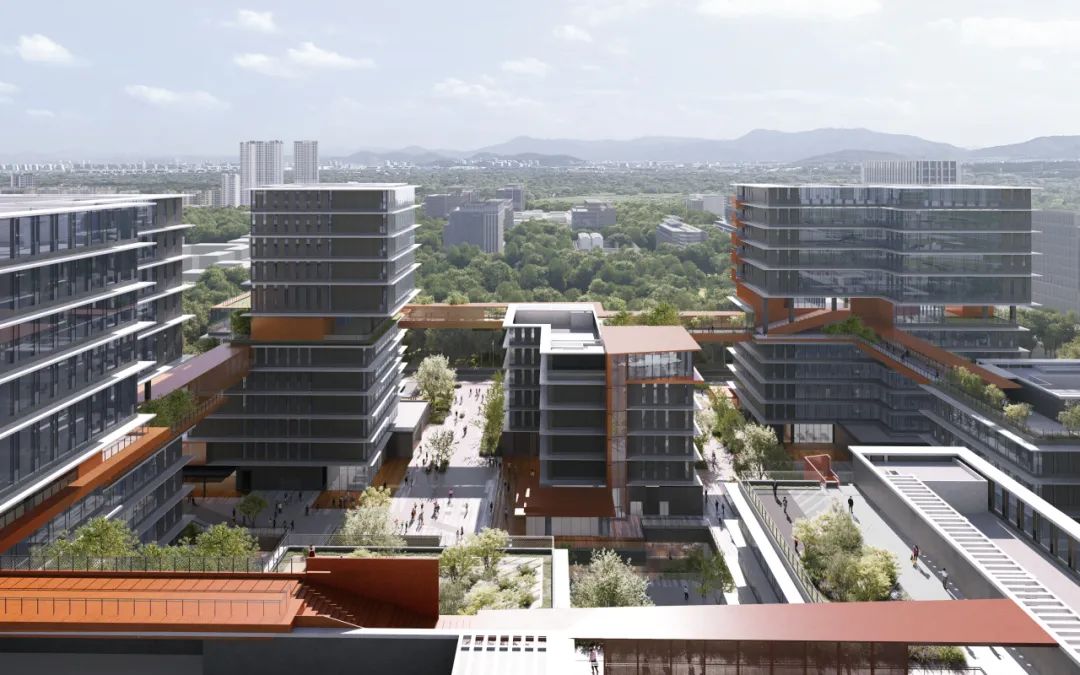 设计理念:借鉴发发奇(FARFETCH)葡萄牙总部艺术创意园“起伏山丘”+华润总部产业园“联结屋顶平台”+深圳粤港澳青年创业区“开放步行体系”+杭州天目里“办公商业融合”,打造生物城“漂浮花园”理念。