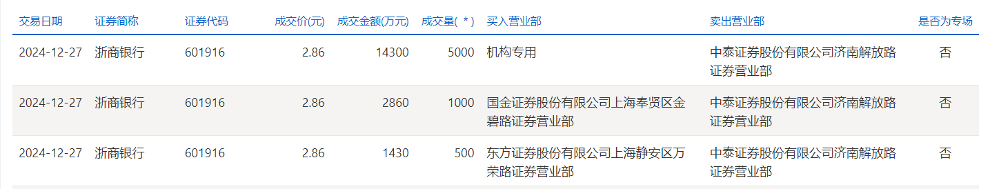 浙商银行今日大宗交易折价成交6500万股,成交额1.86亿元