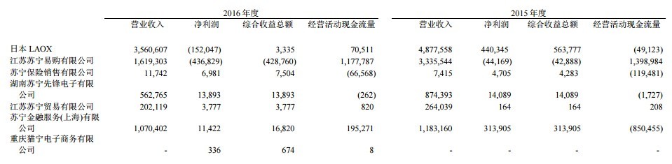 年报显示,2016年度,苏宁消费金融有限公司注册资本6亿元,总资产16.73亿元,净资产3.49亿元,营业收入1.06亿元,净利润为-1.89亿元。