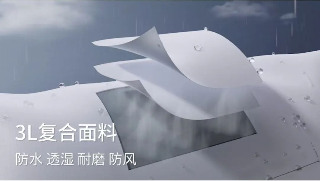 “3L指的是三层结构,2L、2.5L和3L分别对应不同的面料层数结构”,方明告诉剁椒,3L面料由防水防风的高性能表层面料、微孔防水透气膜及内衬或者加固层构成,能够提供额外的耐磨性和硬度。