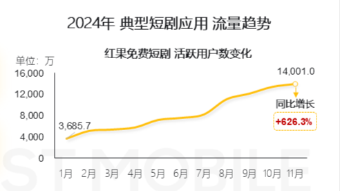 它不仅完整复制了番茄小说的商业模式,更将免费+广告的逻辑推向了一个新的高度。仅用一年时间,红果短剧就今年结束前实现了月活1.4亿的成绩,日活更是到达了4000万的级别。