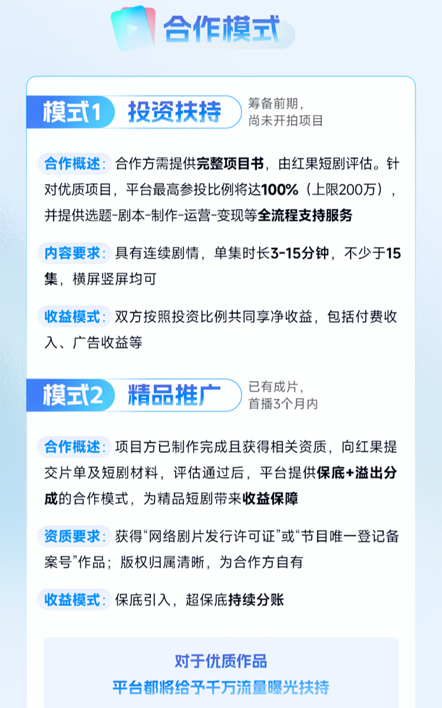 对创作者而言,平台提供的“最高100%投资支持”以及“千万级流量扶持”无疑具有极强的吸引力。能够同时提供资金支持和流量保障的模式,正在形成对传统影视行业的创作资源虹吸效应。