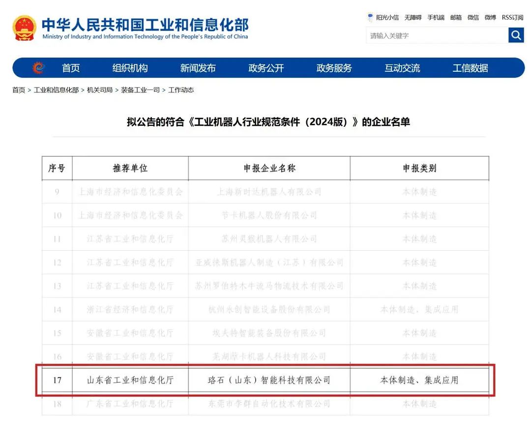 经济导报注意到,为加快推进新型工业化,进一步加强工业机器人行业规范管理,推动产业高质量发展,工业和信息化部对《工业机器人行业规范条件》进行了修订,并在此基础上组织各地工业和信息化主管部门、有关中央企业开展申报工作。珞石机器人成为山东省唯一入选《工业机器人行业规范条件(2024 版)》拟公告名单的企业。