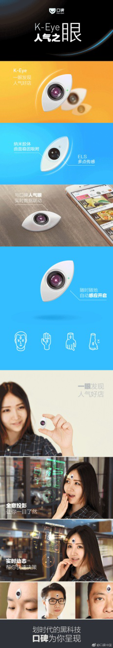口碑推出了黑科技产品——人气眼 K-Eye。它使用最新纳米材料和传感技术,与口碑人气眼实时数据联动。根据商店的人气值,自动开合,帮你发现最旺人气店。