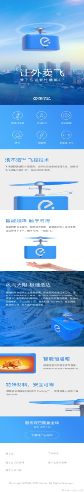 经过781天的探索和365次测试,饿了么π研究院全新外卖黑科技——送餐竹蜻蜓E7!