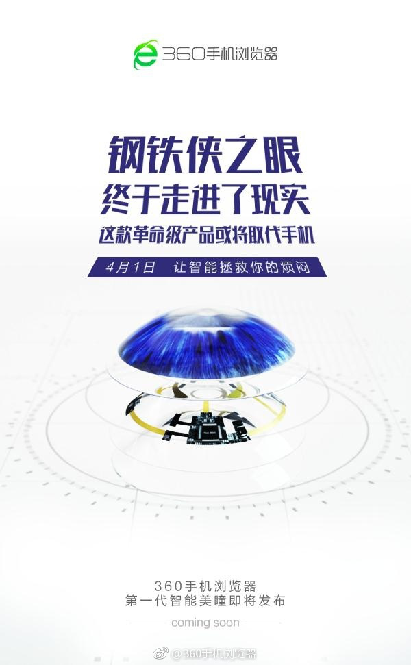 你想拥有一双钢铁侠的眼睛吗?你想摆脱手机,用意念控制“视界”吗?360手机浏览器历时三年打磨了一款人工智能新品—360阿瞳目,捕捉内心情绪,意念掌控资讯,还能一键卸妆,看清妖艳本色……这样的智能美瞳,你想要吗?