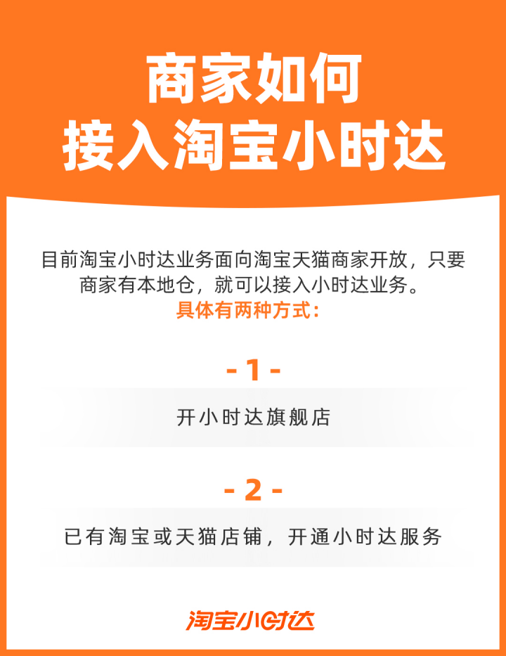 今年7月,淘宝再次升级小时达的业务优先级,在app首页给予小时达一级流量入口。同时与饿了么达成合作,面向有本地仓,能满足即时配送需求的淘天商家开放入驻。
