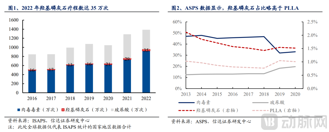 图3.羟基磷灰石疗程数和市场占比图(图片来源:信达证券)