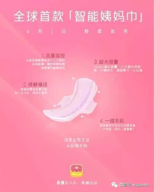 愚人节当天,女性之友美柚对外宣布,推出其公司秘密研发的全球首款「智能姨妈巾」发布。
