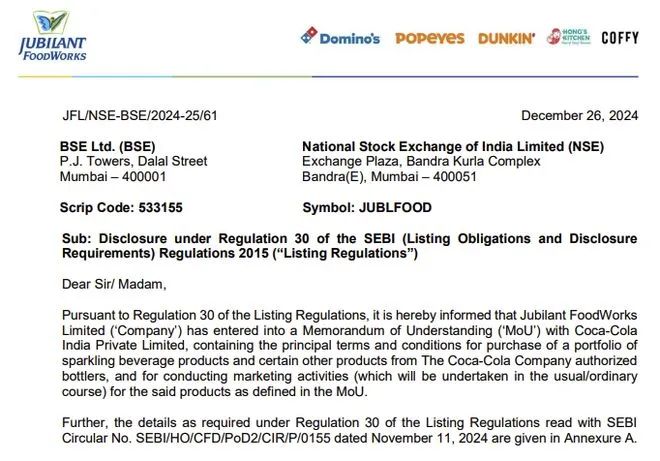 印度餐饮巨头Jubilant FoodWorks拟收购可口可乐在印汽水业务组合