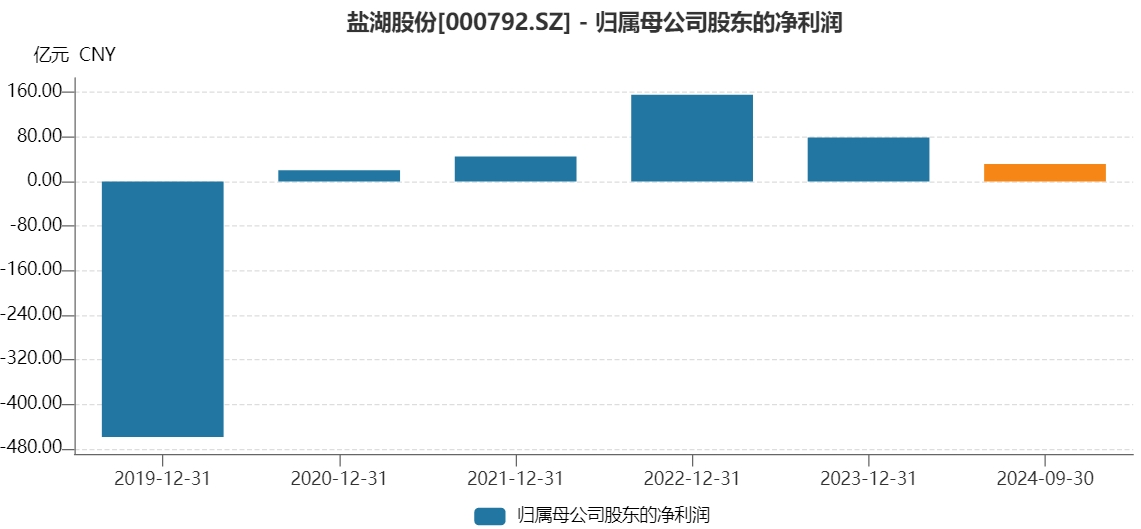 从主营业务盈利能力来看,盐湖股份毛利率从2022年末的79.1%,到2023年末降至56.05%,今年三季度末为54.46%。