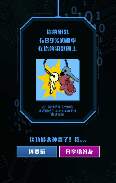 一本正经的界面,严谨科学的寻找过程,似乎钥匙就要凌空出现在面前。