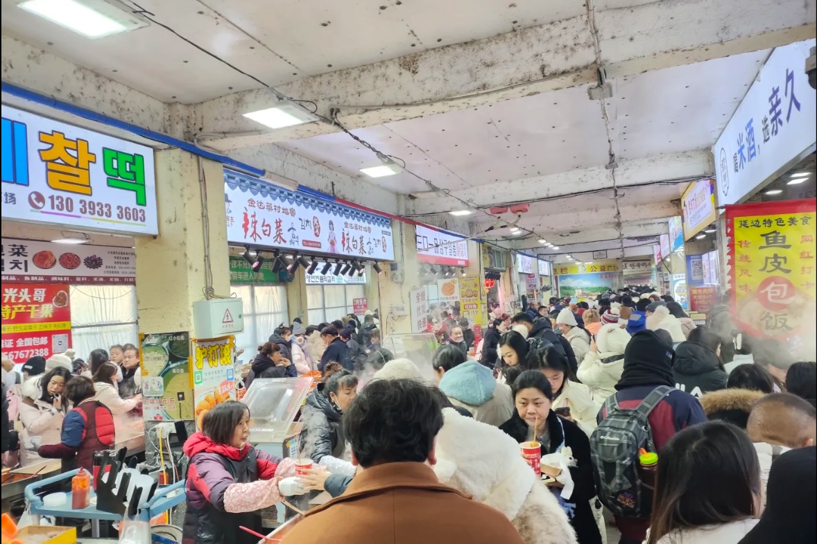 大众点评上,许多网友把水上市场列为“延吉必打卡”项目,并发布各种早点摊排队攻略。进入严冬,早市内却热火朝天。许多小吃摊排起长队,人参、明太鱼等特色农副产品摊位也颇受欢迎。
