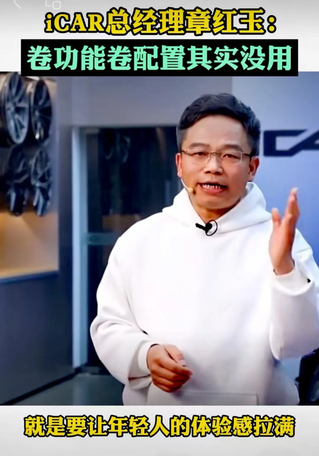 日前,iCAR汽车总经理章红玉,在官方直播间中宣传新车iCAR V23,针对用户的低配质疑表示道:“卷功能卷配置,其实没用。很多车上的功能和配置,你拿到车根本就没用过。”