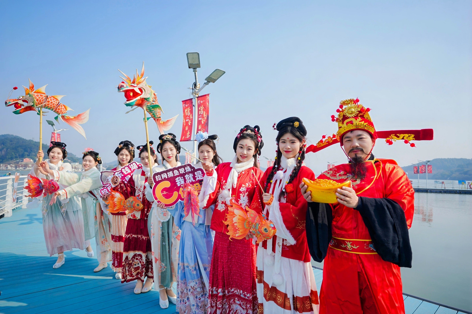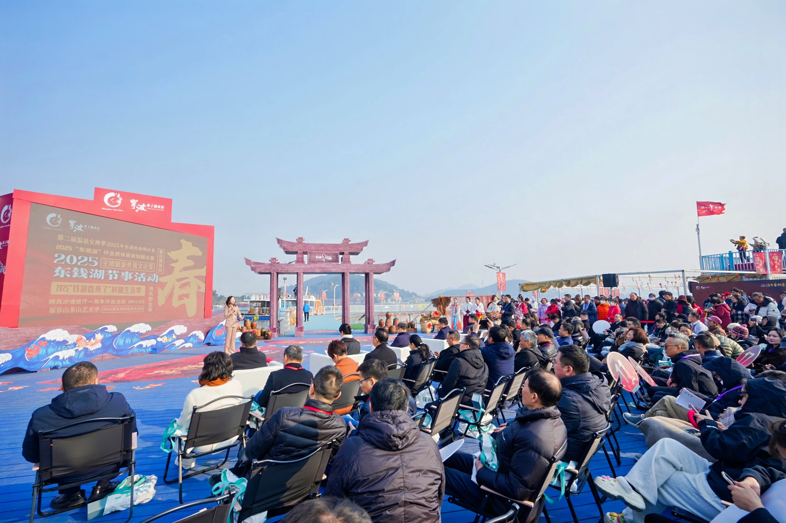 活动伊始,渔歌舞表演便拉开了序幕。身着传统服饰的渔民们载歌载舞,将东钱湖渔文化的独特魅力展现得淋漓尽致。紧接着,祈福醒网仪式庄重而神圣,通过传统的祈福仪式,祈求新的一年里渔业丰收、平安吉祥。