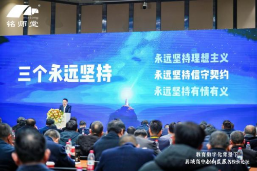 俞总表示,杭州铭师堂作为一家具有高度社会责任感的互联网教育企业,一直将赋能县中发展作为重要目标,秉持“务实、有用、深度、思想”的论坛宗旨,举办此次名校长论坛,期望大家能够在这开放共享、充分交流,有效借鉴经验,提炼实践精华,务实发展布局,创新管理思路,相信大家碰撞而出的荧荧之火终将汇聚成光,一起照亮更大的世界。