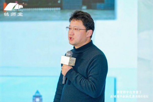 杭州铭师堂创始人、董事长兼CEO赵华锋以企业在教育数字化领域的深耕实践为基础,详细阐述了数字化技术如何为县域高中提供个性化教学解决方案,打破地域限制,共享优质教育资源,实现教育公平与质量提升的双重目标。他的分享让校长们看到了教育数字化在实际应用中的巨大潜力,引发了大家对如何将数字化工具与学校教学管理深度融合的深入思考。