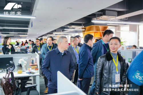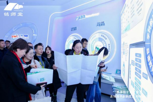 数字化赋能模块无疑是本次论坛的焦点之一。在铭师堂互联网教育体验中心和升学e网通事业部,工作人员通过一系列的展示和讲解,生动地呈现了铭师堂企业文化和升学e网通在高中教育领域的场景应用,让每一位参会校长都亲身感受到了科技为教育带来的深刻变革和无限可能。