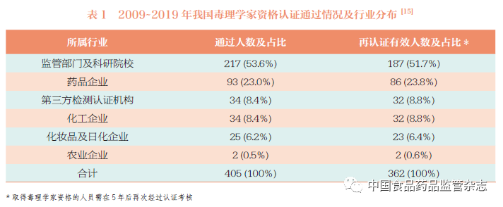 根据《中国食品药品监管》杂志此前刊文,在2009-2019年间,共有405名毒理学家通过了中国毒理学家资格认证考试,其中将近一半的人分布在监管部门及科研院所,而分布在化妆品及日化企业的人数却不到10%。