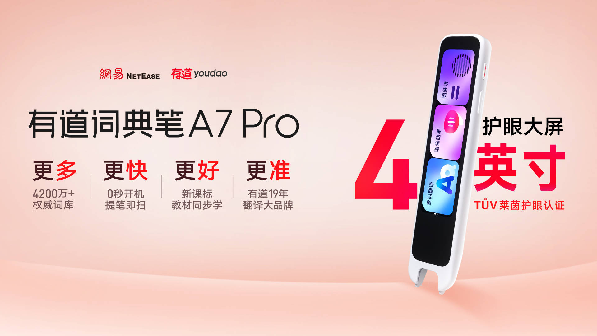 2025新年钟声刚刚敲响,作为智能词典笔品类的开创者和领军者,网易有道隆重推出了一款词典笔新成员——有道词典笔A7 Pro,它以更快的查词速度“提笔即扫不用等开机”、更大的4英寸护眼屏和4200万超大词库、更好的新课标同步学功能,以及更准的专业翻译实力,再次刷新了中英双语学习的流畅体验,满足广大家长和孩子对智能学习工具的核心需求。