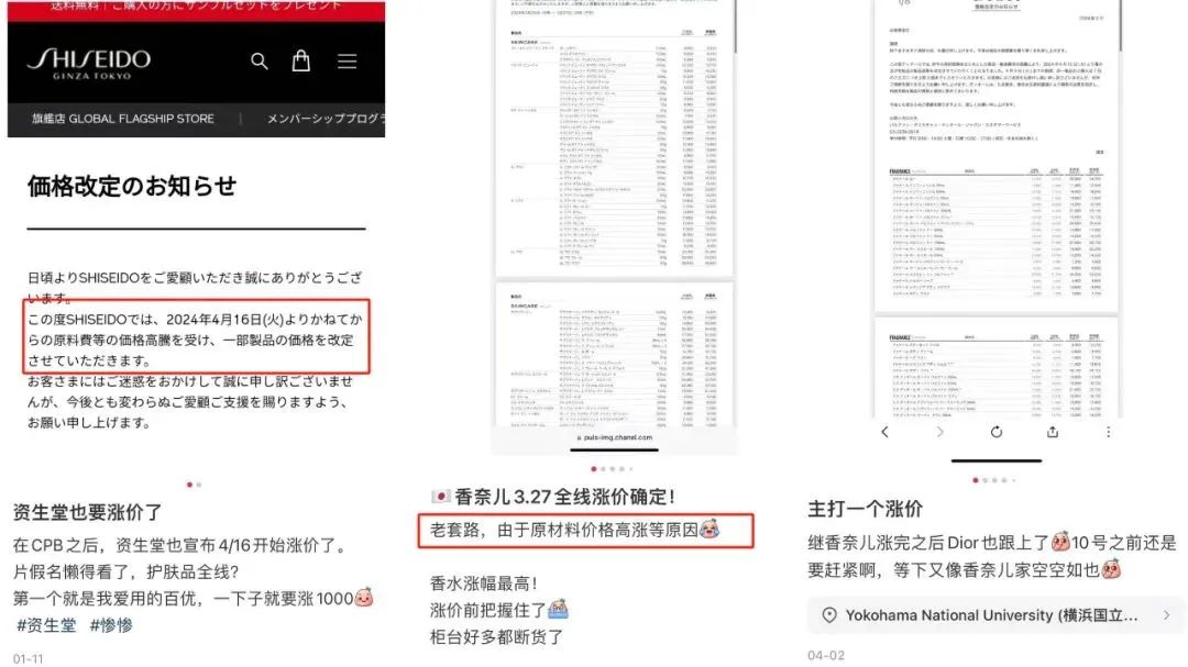 此外,资生堂、香奈儿日本、迪奥日本此前发布的涨价通知中,也均有提及原材料价格上涨、生产成本提高是提价的因素之一。