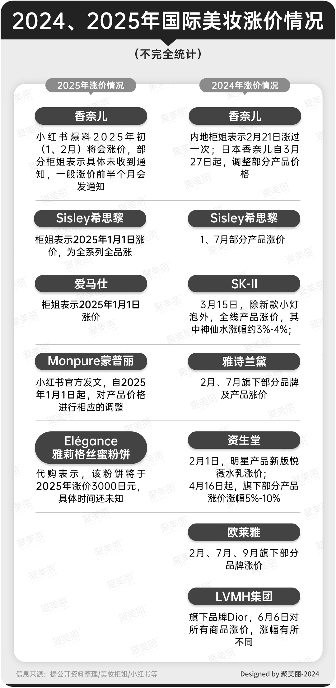 聚美丽致电了专柜柜姐,上海、杭州、苏州部分柜姐均表示,2025年1月1日开始全线涨价。