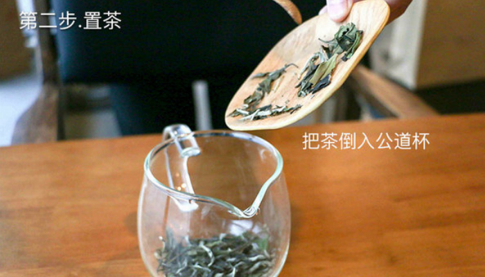 第二步:将茶叶倒入公道杯内,茶叶量根据喜好添加,一般建议5g。