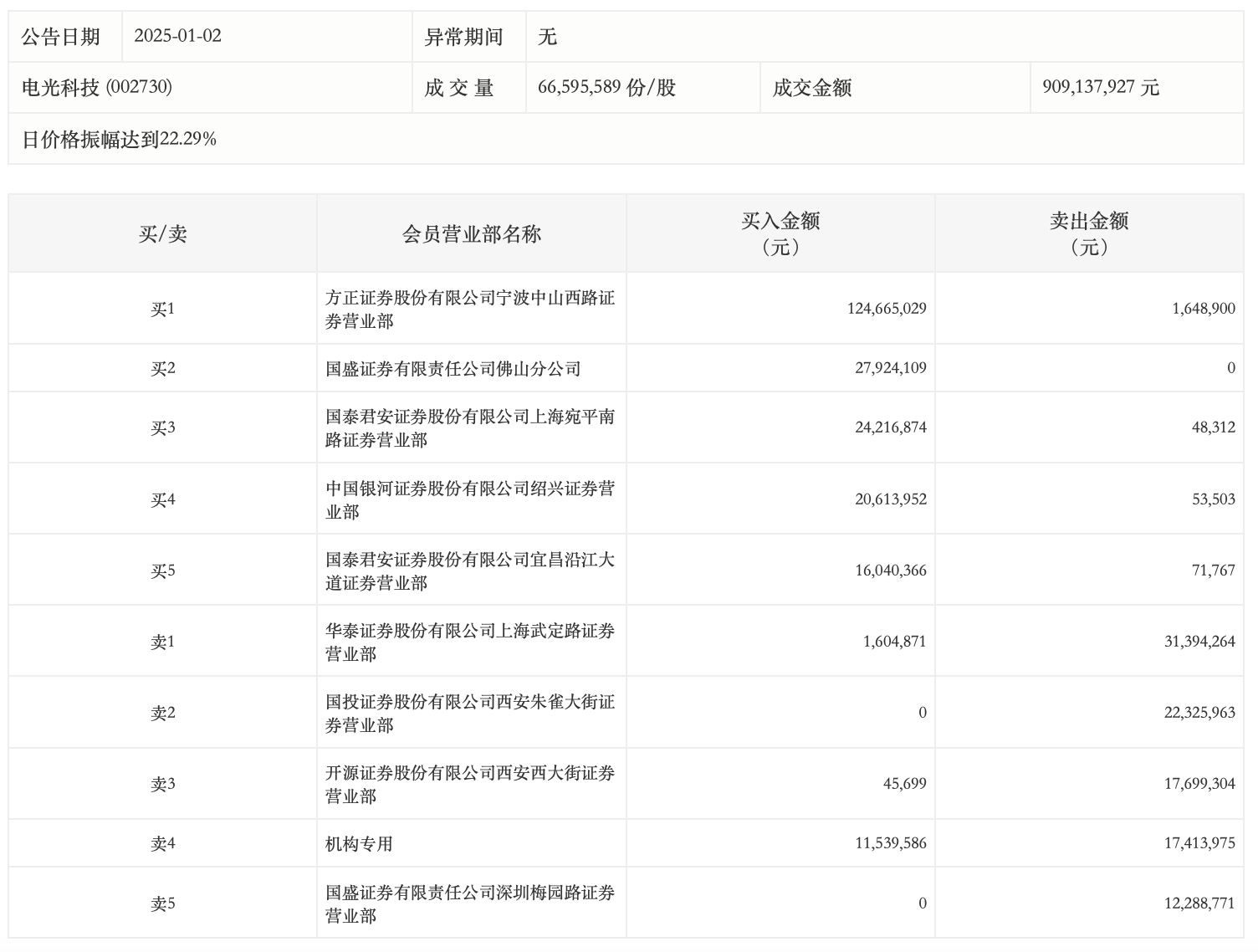 龙虎榜丨电光科技今日涨停走出“地天板”,一机构净卖出587.44万元