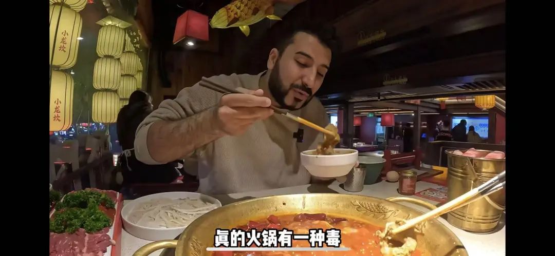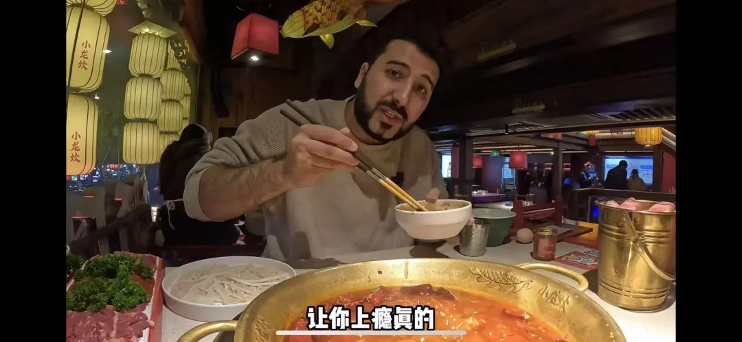 伊拉克美食博主“@老王在中国”品尝川式火锅