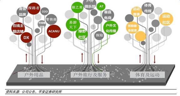 A股另一支户外用品公司探路者本季度股价累计跌幅达16.6%,2月份,公司终止对于体育行业标的收购并复牌后,股价已滑落至年内最低点。对于探路者来说,除行业整体调整外,它还面临库存过高的问题。同时,主业低迷促发了探路者的转型。2015年年初,探路者正式宣布开启以“经营用户”为核心,围绕户外、旅行、体育三大业务板块展开的生态圈发展战略,搭建户外、旅行、体育三大事业群。