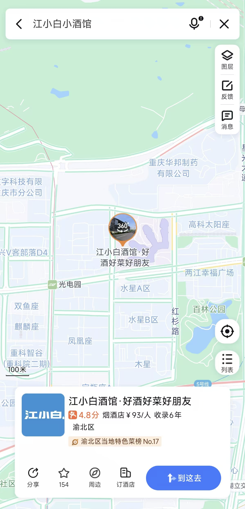 但从结果来看,“江小白”的形象并没有因为金盖的诞生而产生太多的变化。而“江小白小酒馆”在2023年底时仅剩2家,如今通过百度地图检索“江小白小酒馆”,可显示的结果仅剩“重庆星汇两江店”一家店铺。