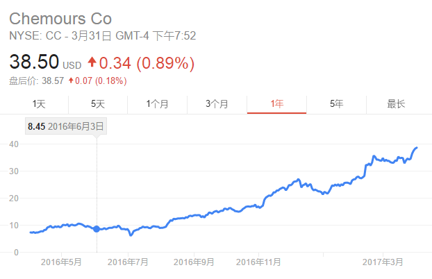 今天Chemours已经涨到了38美元。