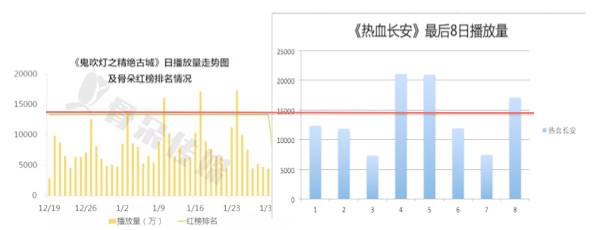 该剧的播放量也是一路走高,和《三生三世十里桃花》在各自的领域制霸。研究其播放量曲线,这部剧的量级是足以和腾讯财报披露的超级IP剧《鬼吹灯之精绝古城》的:热血有数日的播放量都在两亿以上,这应该算是近期网剧日播两的峰值了吧。