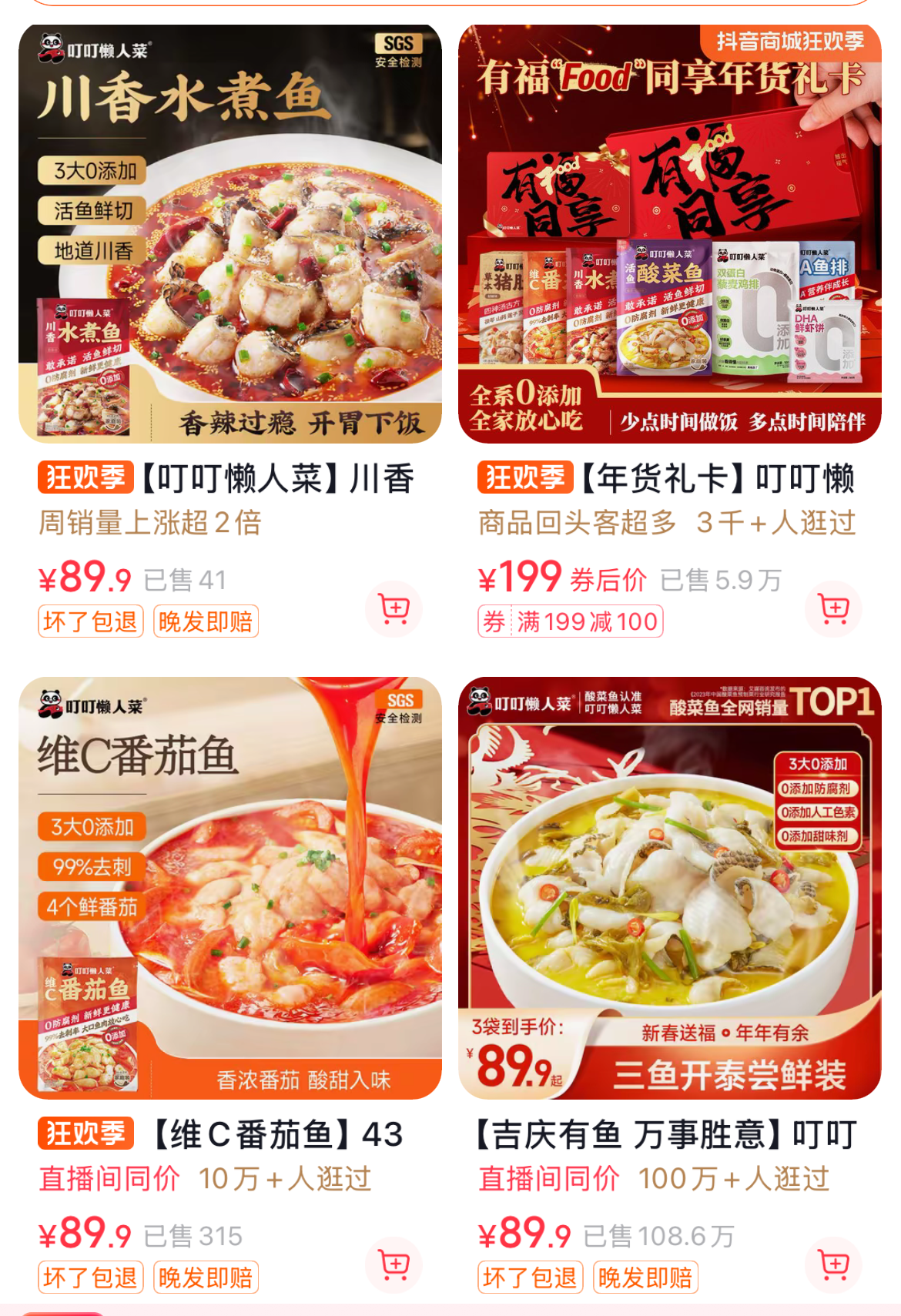 主打酸菜鱼预制菜的叮叮懒人菜,推出了“0防腐剂、0人工色素、0甜味剂”的鱼火锅。另外,酸菜鱼、猪肚鸡、虾饼、酸菜等多款产品的介绍都强调0添加。