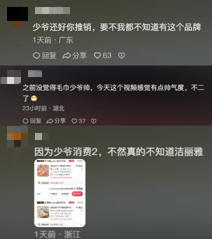 评论区还有网友细数每个人打广告的次数:丁佳敏给特步跑鞋打了8次;罗成提了7次好利来的产品;石展承则不下10次拿出自家毛巾、拖鞋。看热闹的网友发现广告植入多到无法跳转的时候,终于还是破了防:“感觉我看的不是三个富二代,而是三个带货主播,只不过他们个个都很有钱而已。”