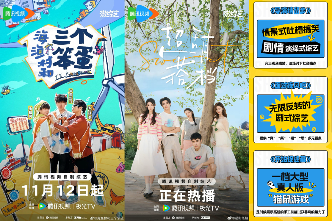 其它几档微综也更具差异化,《超甜搭档》揉合了演综+恋综+短剧的长短生态,节目发动网友共创、最终将选出一对CP参演定制短剧;《导演请留步》主打情景式吐槽,鹅厂此番携手了此前B站《片场日记》制作方「王尼玛团队」共探新赛道;2025年腾讯视频还将陆续上线“无限反转的剧式综艺”《面对疾风吧》、“一档大型真人版猫鼠游戏”《开始捉迷藏》,他们将在排播上共同构成腾讯视频中午12点的微综节目带,一整个满足了平台用户午间“下饭”的多元观综需求。