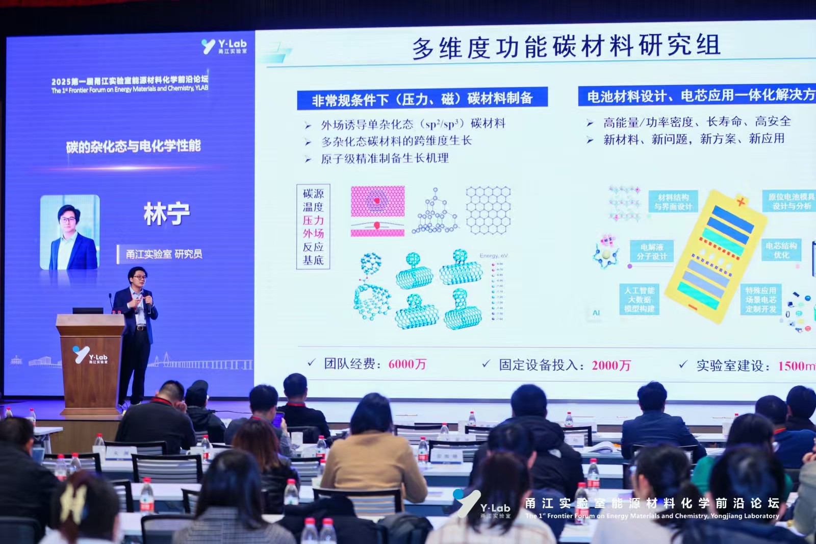 来自甬江实验室多维度功能碳材料研究组的林宁研究员带来《碳的杂化态与电化学性能》报告,探索碳的结构对电化学性能的影响,挑战碳杂化态调控的难点,对于基础研究,甬江实验室采用长周期考核PI制,让科研人员潜心研究。“我们希望破除五唯、建立五重。人才引进方面做到找得到、选的对、引得进,让人才和实验室共同发展。"甬江实验室主任崔平说到。